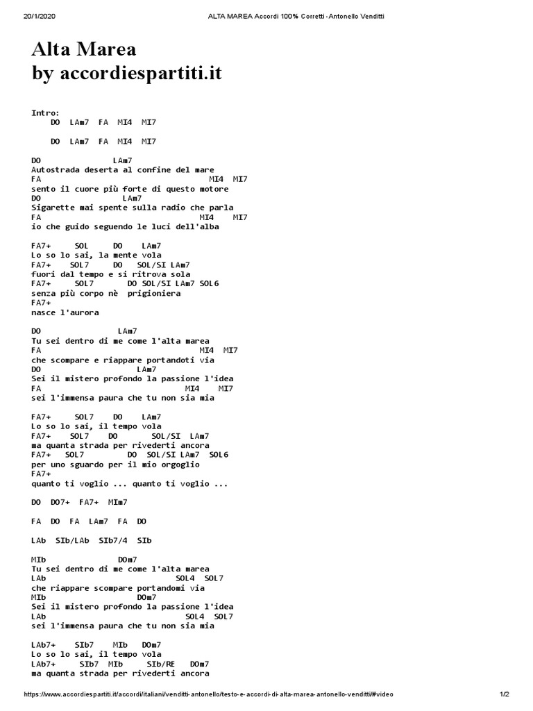 Alta Marea Accordi 100 Corretti Antonello Venditti